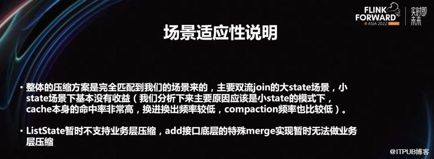 恢复时间长。因为 rocksdb 是一个嵌入式的 DB 存储,每次重启或者任务的 rescale 状态恢复时间长。因为它要把很大的文件下载下来,然后再在本地进行一些重新的 reload,这就需要一些大量的扫描工作,所以会导致整个任务的状态恢复时间比较长。观察下来,正常来说大任务基本需要 5 分钟左右才能恢复平稳的状态。
