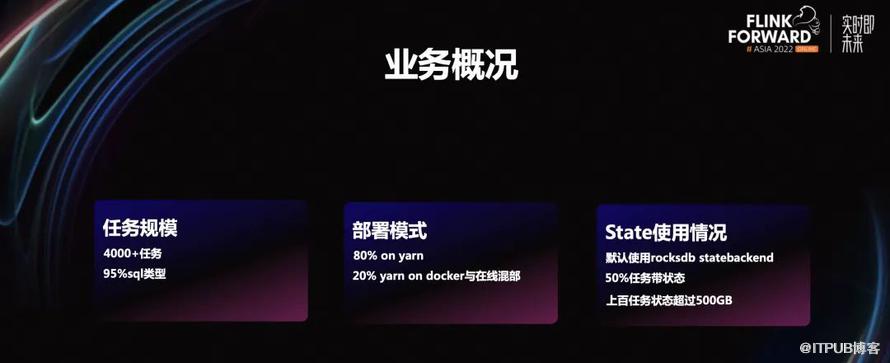 state 使用情况,平台默认开启的全部是 rocksdb statebackend,大概有 50%的任务都是带状态的,其中有上百个任务的状态超过了 500GB,这种任务我们称之为超大状态的 state 任务。
