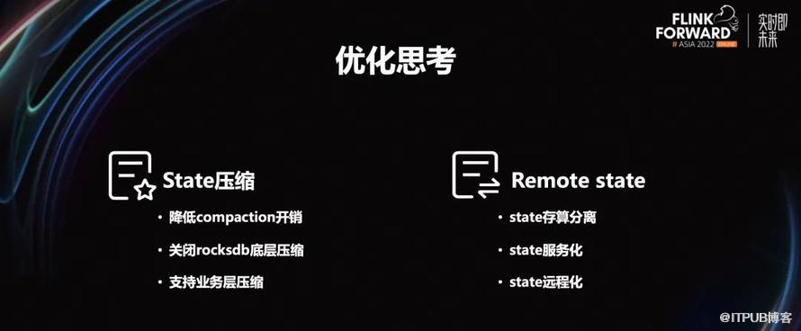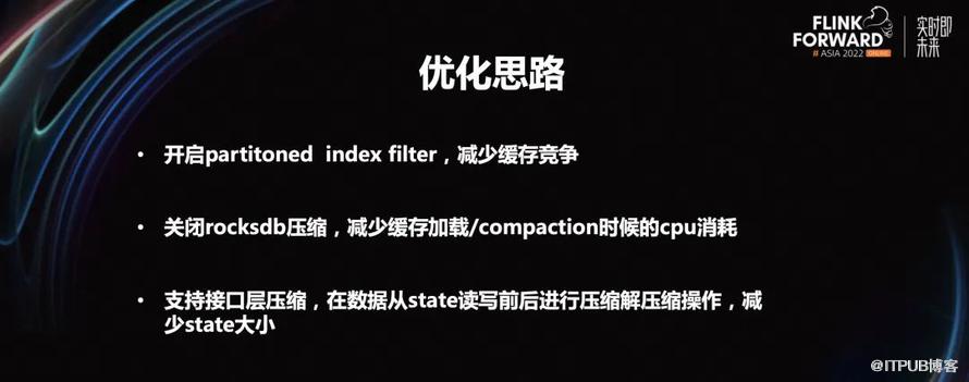 第三个是支持接口层压缩,在数据 state 读写前后进行解压缩操作,减少 state 大小。如果关闭 rocksdb 底层的压缩,我们观察到整个磁盘的使用量非常高。这样的话,压力就是从压缩和解压缩的 cpu 消耗变成磁盘的 io 消耗,磁盘的 io 很容易就被消耗尽了。所以我们就把整个底层的压缩往上层进行了一个牵引,支持接口层的压缩。