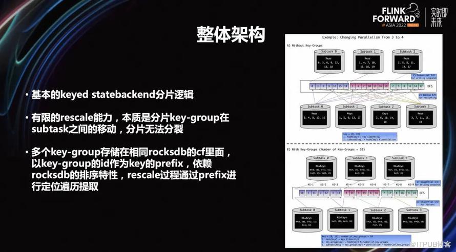 多个 key-group 存储在相同 rocksdb 的 cf 里面,以 key-group 的 ID 作为 key 的 prefix,依赖 rocksdb 的排序特性,rescale 过程通过 prefix 进行定位遍历提取。