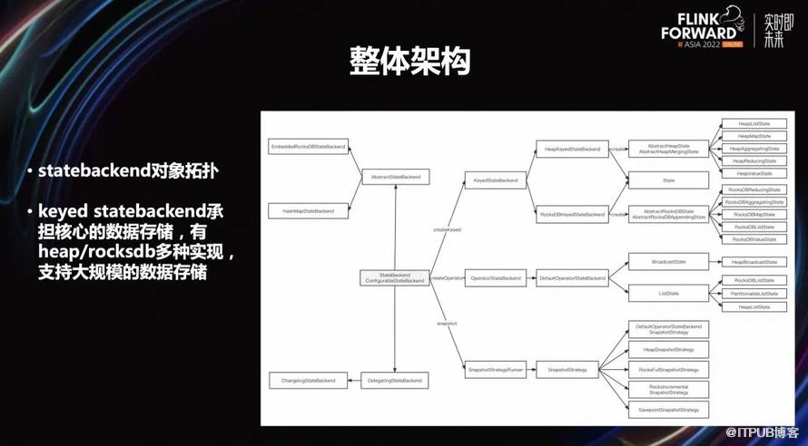 上图是社区 keyed statebackend 的分配逻辑架构。如果想要把 keyed statebackend 做存算分离,需要了解: