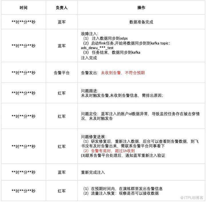 收集、汇总记录演练过程中的每个操作,含时间点、执行人、操作等,如下: