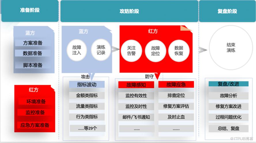 整体演练过程,大致分为三个阶段:准备阶段、攻防阶段及复盘阶段。