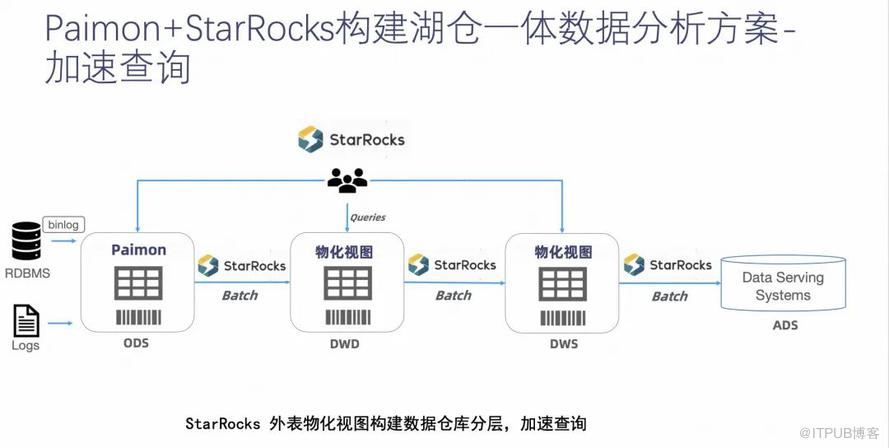 第二个方案是 Paimon 和 StarRocks 构建湖仓一体数据分析的加速查询方案。