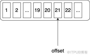 例如当消息队列中有100条消息,消费者第一次消费了20条消息,那么第二次消费的位置肯定是要从第21条消息开始消费,而记录第21条消息的信息称之为offset,offset为已经消费位置+1.