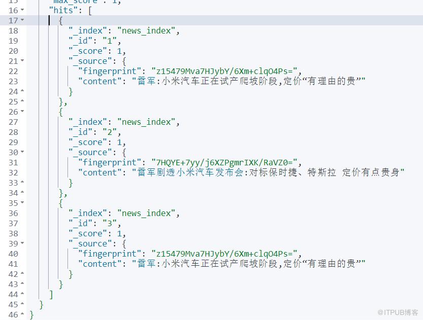 由于_id为1和_id 为3 的两个 content 一致,所以它们的 fingerprint 也是一致的。