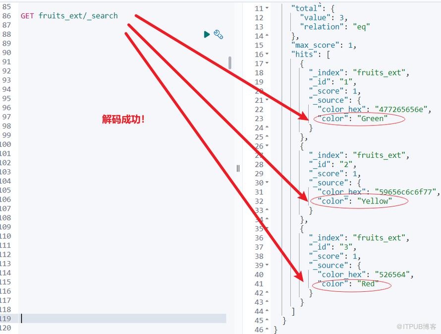 注意:之前咱们很少这么用。看细节,上面的召回结果有 "_id": "decodebase64", 你关注一下,一会就能用到!