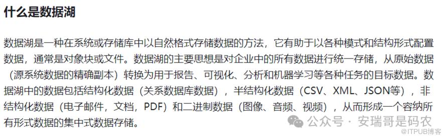 虽然不同的文章,对于什么是数据湖的解释不完全相同,但核心总结起来就是: