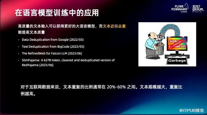 不同于精确去重:不要求完全一致,或者子串关系 基于局部敏感性哈希 Locality-sensitive hashing:相似的样本更容易被 Hash 到相同的 buckets 内 对于文本数据来说,通常基于文本特征化后的 Jaccard 距离,使用 MinHashLSH 来找到相似文本