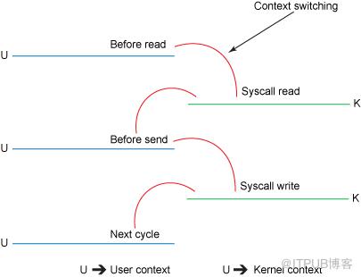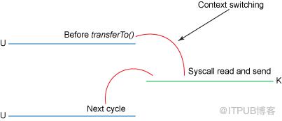 在此模型下,上下文切换的数量减少到一个。具体而言,transferTo()