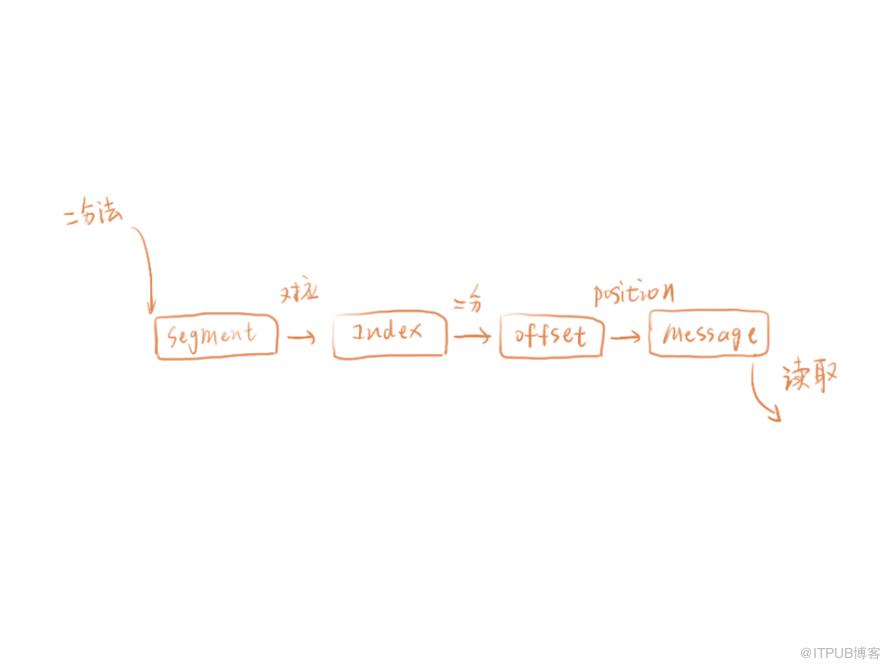 按照二分法找到小于 offset 的 segment 的.log 和.index 用目标 offset 减去文件名中的 offset 得到消息在这个 segment 中的偏移量。 再次用二分法在 index 文件中找到对应的索引。 到 log 文件中,顺序查找,直到找到 offset 对应的消息。