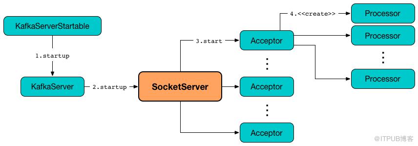 Kafka 即基于 Reactor 模型实现了多路复用和处理线程池。其设计如下: