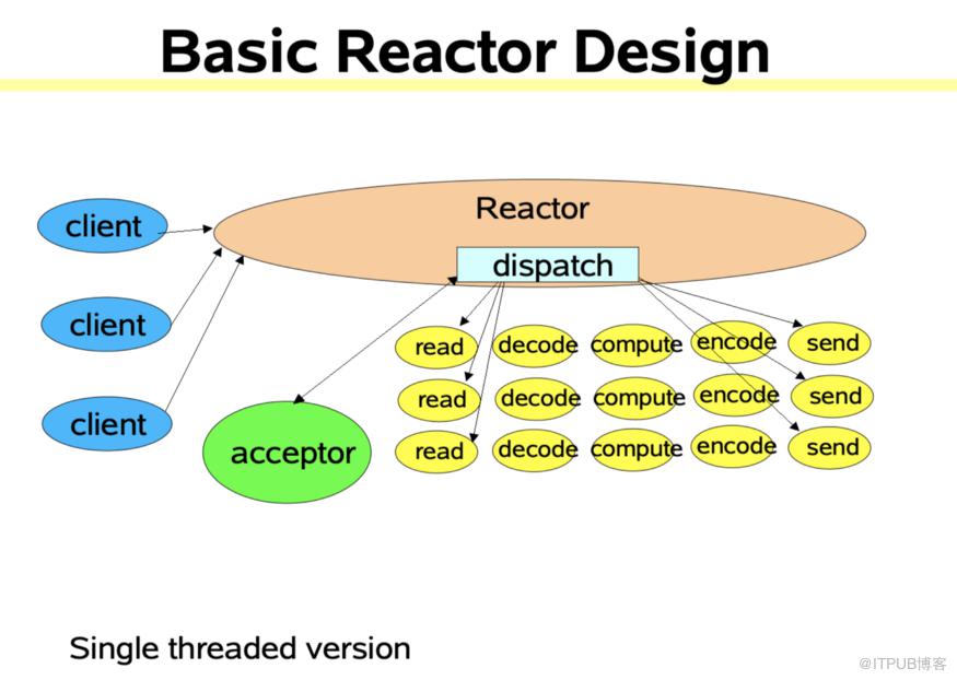 Reactor:把 IO 事件分配给对应的 handler 处理 Acceptor:处理客户端连接事件 Handler:处理非阻塞的任务