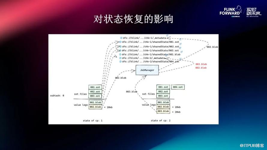 我们也尝试另一种方式,比如去调低阈值,降低文件数。如果我们让它直接写到 Job Manager 的 Matter Data 里面,这样就只有一个文件去恢复,但是它的 Job Manager 也会成为瓶颈,它会频繁的在恢复的过程中去 OOM 。OOM 的原因也很简单,因为我们放在了它的 ByteStreamStateHandle ,那么在提交任务的时候,TDD 的大小会占用 Job Manager 的内存。