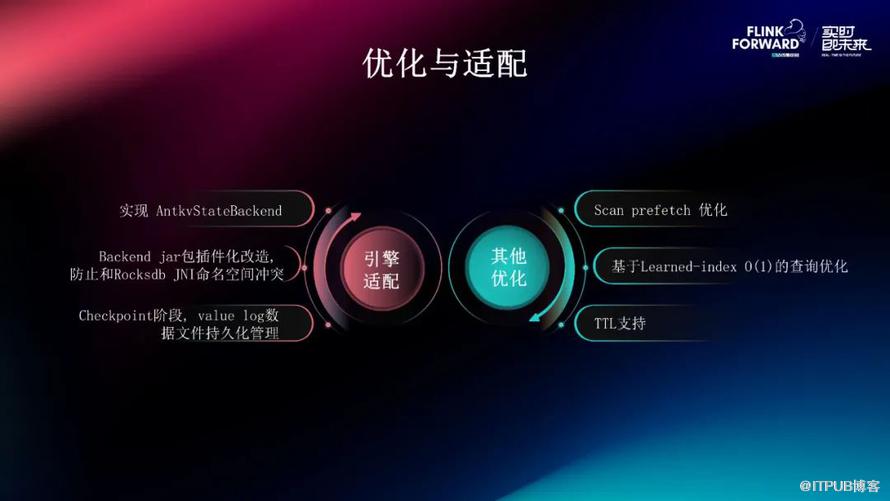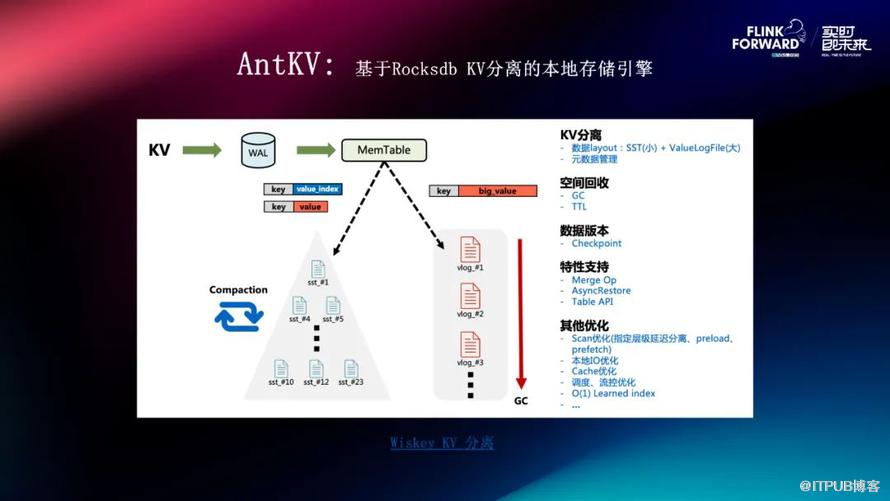 从引擎侧去和 AntKV 适配,我们主要实现了 AntKV 的 statebackend,Backend 实现了插件化改造,防止和 RocksDB 的 JNI 的命名冲突,并且在 checkpoint 阶段去对 AntKV 所产生的额外的 value log 的数据文件进行持久化管理。其他的优化包括 scan 的 prefetch 优化,为了解决在它 scan 产生随机 IO 的情况下如何提升它 scan 的性能的问题、以及基于 learned index 的这种 O(1) 的查询优化能够极大的提升它的 get 的时效性、以及在 Statebackend 里面内置支持 TTL 的功能。