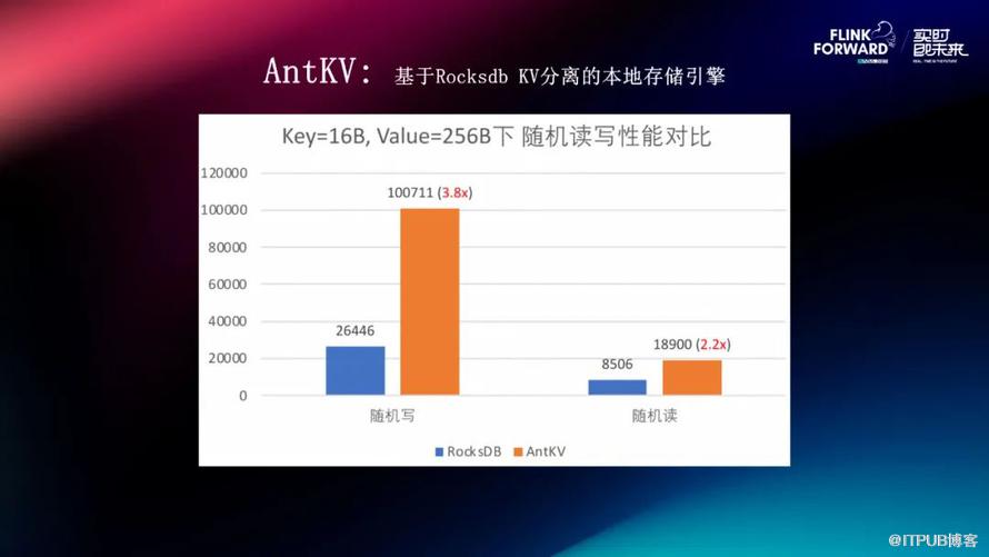 从 AntKV 这个角度来去测试整体的吞吐读写测试的话,相比于 RocksDB 来说,达到了两到四倍左右的提升,比较可观。