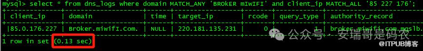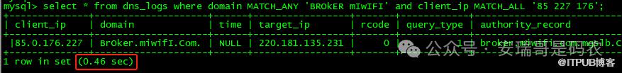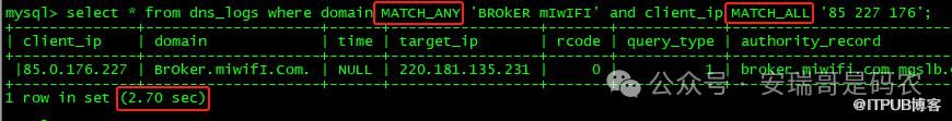 可以看到,通过对 client_ip 的历史数据创建倒排索引(近9百万条记录),一共花了约2秒钟。