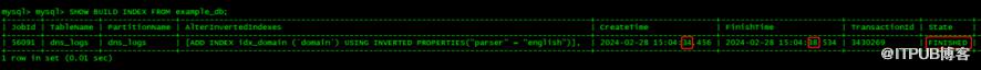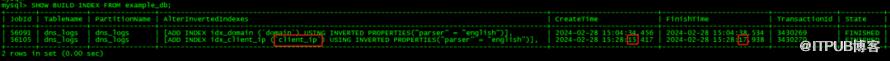 可以看到,近9百万条数据,大概用了4秒钟就完成了 domain 这个字段的倒排索引创建过程。