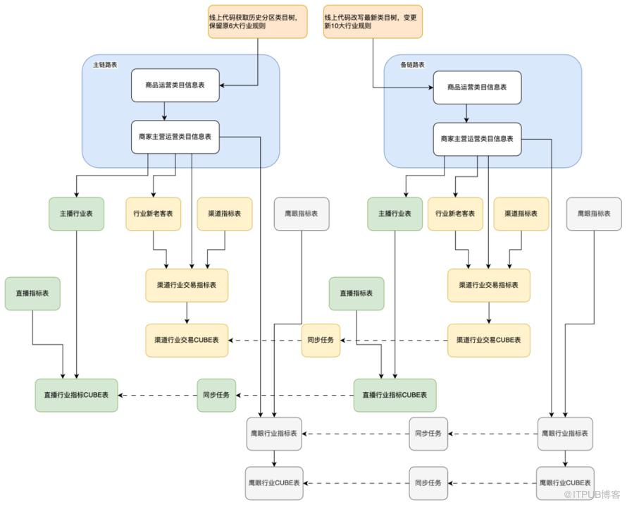 在行业发生变更时,业务数据仓库会根据最新的行业映射信息,重新构建备链路上的商品行业和商家行业维表。与此同时,主链路上的维表保持原行业映射不变,确保业务连续性。回刷过去两年的数据,包括商家行业维表、行业新老客维表,以及最新一天的商品行业维表。