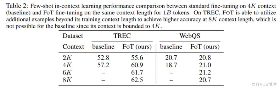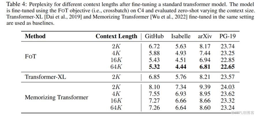 同时,作者也对比了在这两个任务中 FOT 方法与传统方法在性能上的差异,可以看到 FOT 方法不但超越了传统方法的上下文长度,并且也获得了更好的效果。