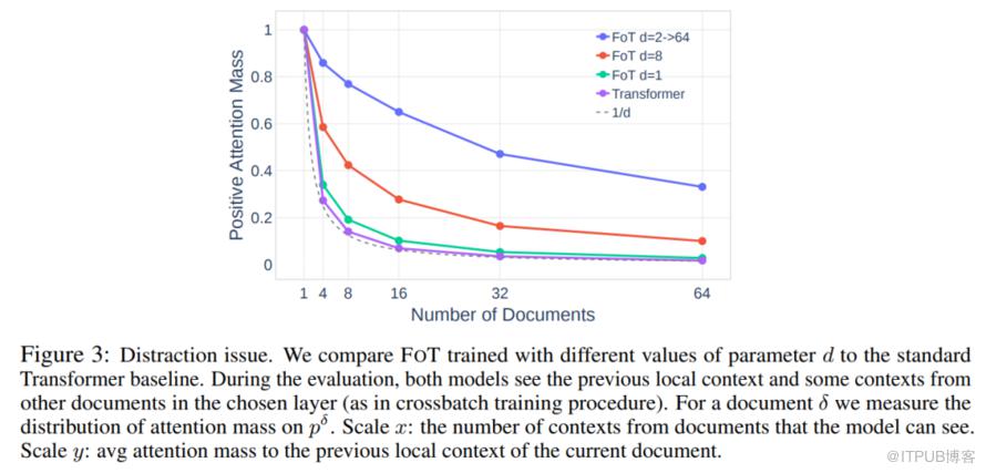 最后,对于第三个问题,作者使用 PG-19 数据集,伴随着 Memory size 的增加,不相关的文档可以被视为一种对模型的“干扰”让模型分心,而从下图中可以看出,更高的 d 会带来更低的困惑度,表明 FOT 方法可以有效处理不相关数据增加带来的干扰,面对干扰更加稳健。