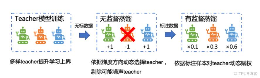 第一阶段,Teacher模型训练,训练多teacher提升学习上限;