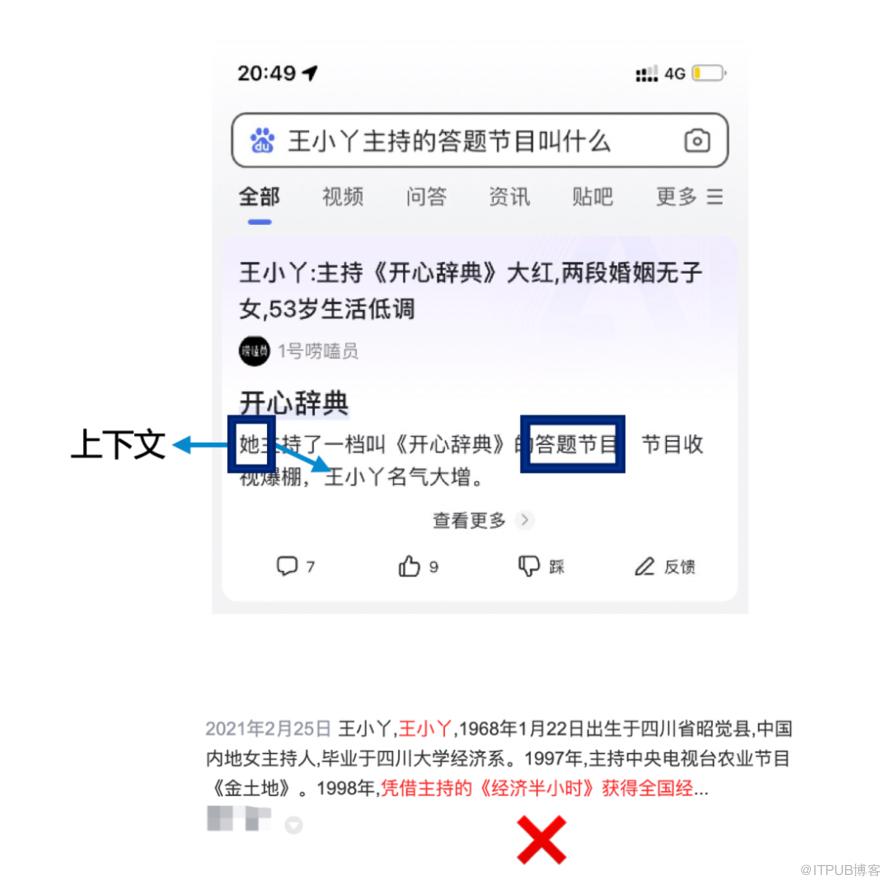 比如最开始的这个例子,如下图所示,答案中提到一个“她”,就需要做指代消解、对上下文的理解,并且上下文篇幅可能很长,通过深层次的理解才能知道所需的是一个答题节目,而不是其他节目。这个问题的解决依赖一些很复杂的模型。