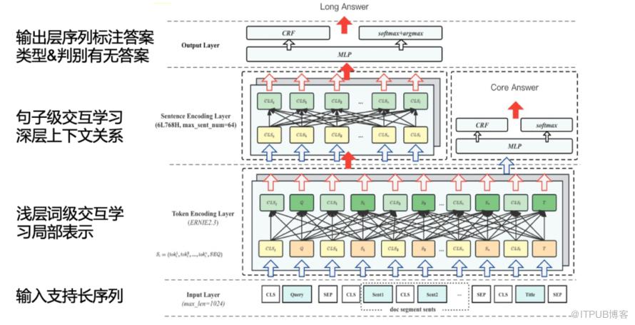 输出层会有两种输出:一种是针对问题输出偏摘要等多句话答案介绍,会使用句子层的输出,然后做序列标注的输出;另一种是强调答案中的关键内容,可能是几个实体,会将token表示做序列标注预测。