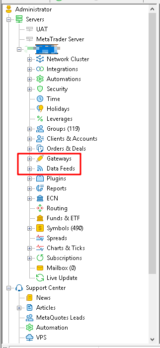 - 部署到MT5 Trade Server本地,然后在MT5 Admin平台上进行新增加数据源。