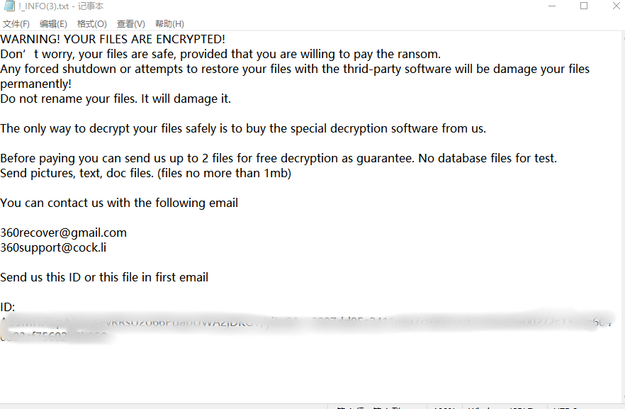 计算机网络技术的不断应用,极大地提升了企业办公与生产效率,为企业提供了极大方便,但同时也为企业的数据安全埋下隐患,近期云天数据恢复中心再次接到企业的求助,企业的计算机服务器遭到了 360 后缀勒索病毒攻击,导致企业服务器下的所有数据被加密,严重影响到了企业的生产生活。 360 后缀勒索病毒是 Beijingcrypt 勒索家族下的病毒,该勒索家族下的 360 后缀与 halo 后缀勒索病毒具有较强的攻击加密能力,通过近期对 360 后缀勒索病毒的解密,为大家整理了一下有关该病毒相关信息。