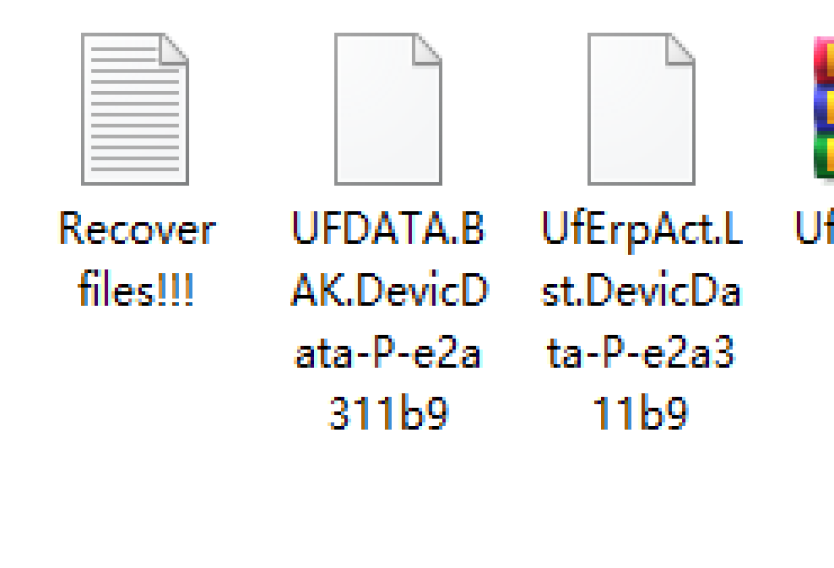2, 攻击表现,当计算机服务器被 devicdata 勒索病毒攻击后,企业的计算机系统几乎处在瘫痪状态, devicdata 勒索病毒会更改计算机系统的注册表,导致软件文件均无法打开使用,所有文件的后缀名变成统一格式,像 jiemihuifu.mdf 文件就会变成 jiemihuifu.mdf.devicdata-x-xxxx 格式,并且还会在计算机的桌面留下一封名为 Recover files !!! .txt 勒索信。