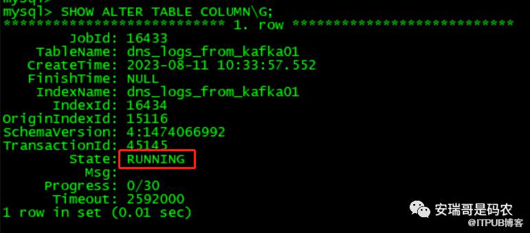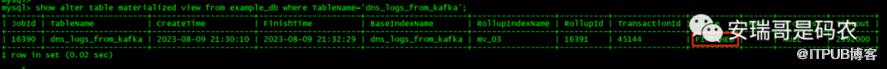 等你确认物化视图(或者rollup)创建成功之后(FINISHED),就可以在你的基础表中看到了(在FINISHED之前是看不到的,也不生效)。