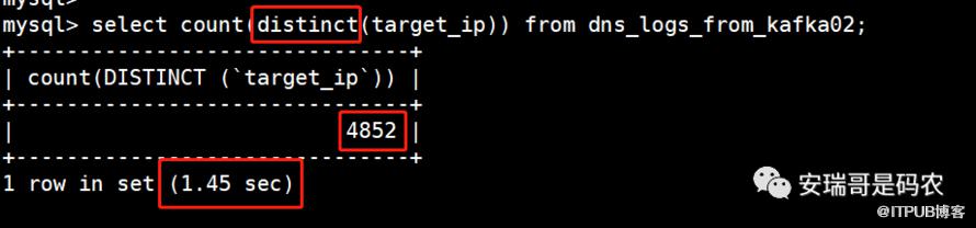作为基准对比,我们先来看用最普通的distinct去重方式,来看看target_ip有多个非重复记录,先来看target_ip这个字段: