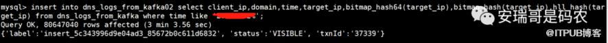 既然这种不行,那我就只能换另一种方式了,因为考虑到需要用bitmap_hash和hll_hash这两个函数,所以我就考虑用下面这种最“笨拙”的方式,从另一张表的数据给insert到这张目标表中:
