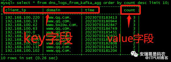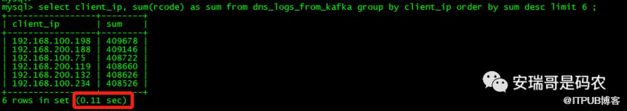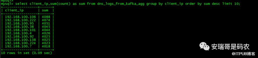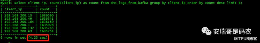 但是,如果我想要知道每个上网IP的上网总次数,对于这张表来说,就得通过如下聚合的方式: