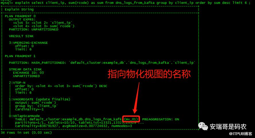 当然,创建好之后,后续的查询,如果想要用到这个物化视图加速,查询语句也必须对应的改为这样:
