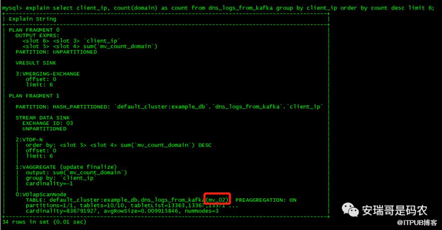 看这个查询时间,就知道刚才创建的物化视图肯定是起作用了。