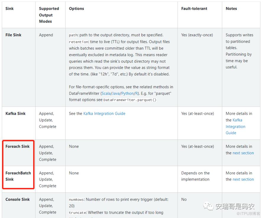 我们从spark的官方文档可以看到,虽然它表面上直接支持的sink对象不多: