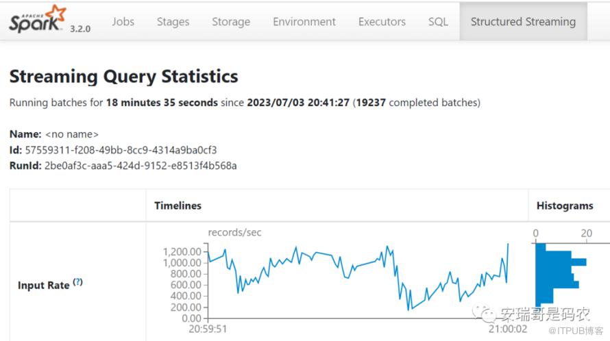 将上面代码打包提交到集群运行,可以通过spark UI监控到整个数据写入的效率情况: