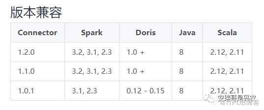 因为我当前集群的spark是3.2的版本,因此就可以大胆选择Doris1.0以上的版本了。