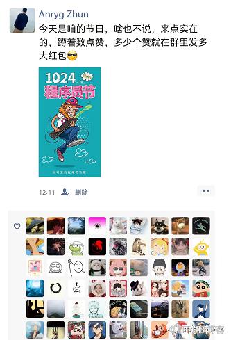 今天是1024,咱们程序员的传统佳节,看到朋友圈里很多小伙伴都在发节日快乐,然后配个1024的图,我呢,虽然也发了条朋友圈,但是却不想落入俗套。我想根据朋友圈的点赞数的多少来向群里小伙伴发红包,刚发完这个朋友圈,群里小伙伴就炸开了锅,各种截图告知,发动群里小伙伴的点赞热情。