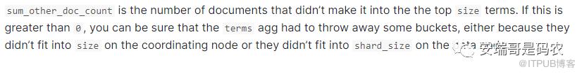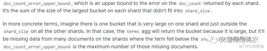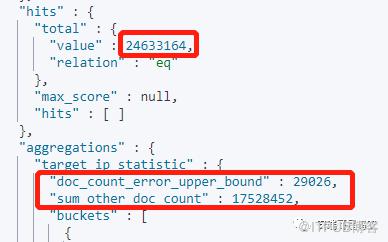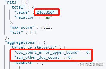 第一个指标意思是:目前可能因为哪些文档没有参加聚合而导致结果不准,注意这里只是有可能不准,也就是说,如果这个数字如果为0,那么本次聚合结果一定准确的,但是如果大于0,也只能说明聚合结果可能存在误差。