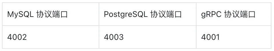 Remarks 表格包含了一些端口信息和测试连接信息。不同的协议有不同端口: