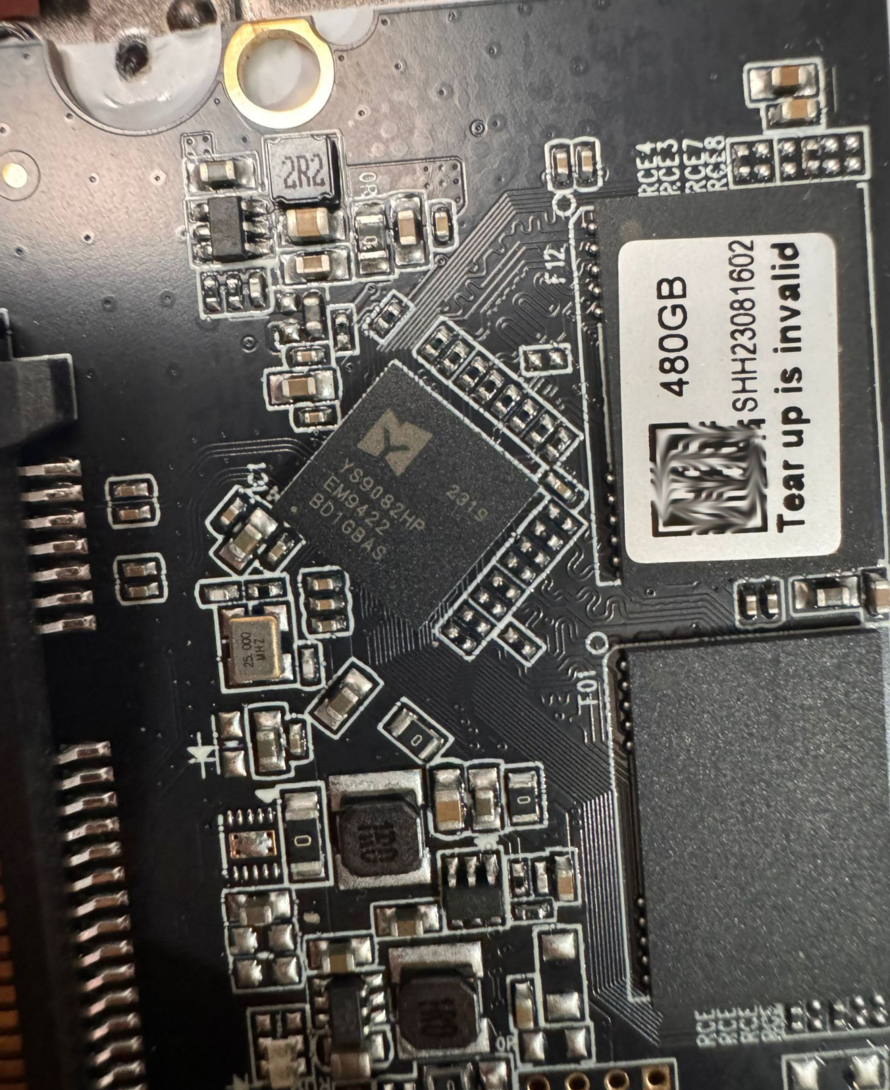 拆开外壳看到是YS9082HP主控(属于得一微SATA产品线上比较中低端的主控型号),闪存颗粒未知: