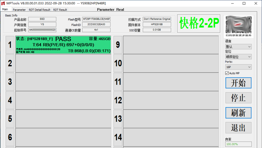 下了几个量产工具,都提示NO FLASH,后来又从量产部落下载了专门支持N48R制程的YS9082HP量产工具,我用的版本是YS9082HP_MPToolV8.00.00.01.033_HPS2818B_N48R.rar