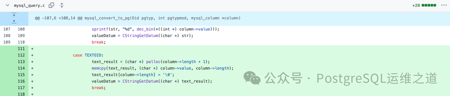 mysql_convert_to_pg函数中同样新增了TEXT类型的处理。