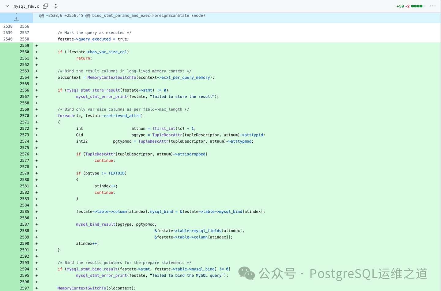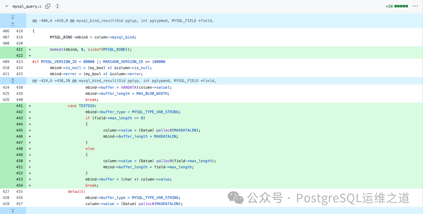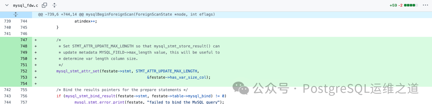 好在mysql_fdw的代码量很小,一边排查代码,一边查看新版本的Release Notes和commit history,发现在mysql_fdw_2_8_0版本中“Fix text column data truncation when reading very long data”这个Fix似乎和我们遇到的场景有些相关性。