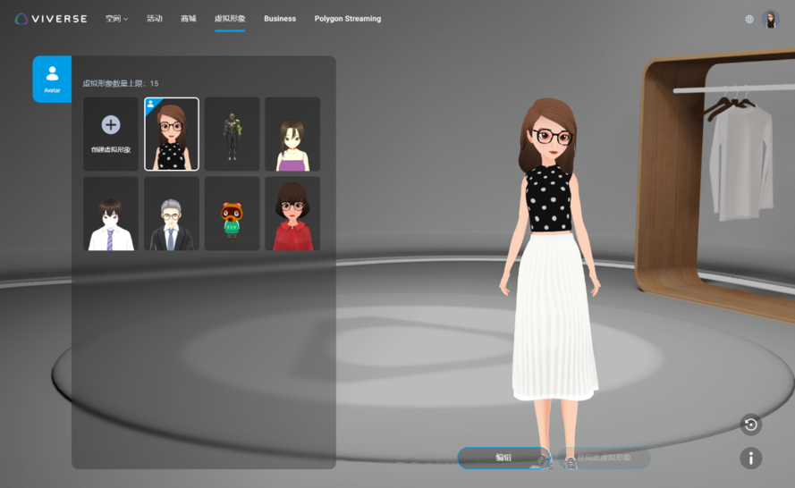 目前 VIVERSE可以免费储存多种不同的虚拟化身,不同的虚拟化身可以用于不同的使用场景。设置为「启用」状态的虚拟化身会在你进入空间时进行展示。
