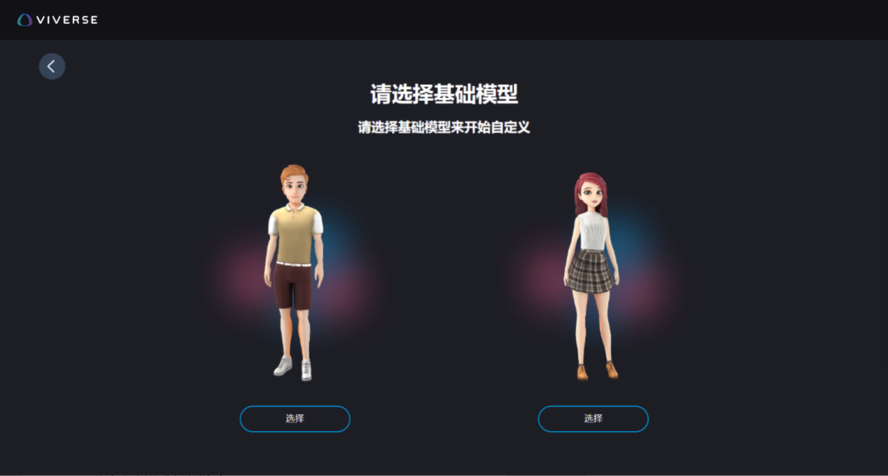 4、 完成第三步后,可以根据自身性别或喜好选择一个基础模型,通过点击鼠标左键拖动可以旋转虚拟形象,转动鼠标滚轮则可以进行放大和缩小虚拟形象,让你能够从全方位查看选择好的虚拟形象。