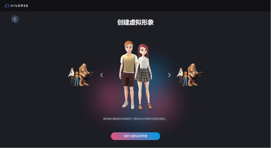 很多线上虚拟 形象制作 平台都可以创建虚拟形象, VIVERSE 平台 就是其中之一。 VIVERSE 平台 不需要下载 和 安装, 同时还 支持多种设备 的使用 , 只需 使用浏览器即可访问。 通过 一些 简单的配置 、 个性化服装、发型和配饰等操作,就可以创建一个专属于自己的虚拟形象。